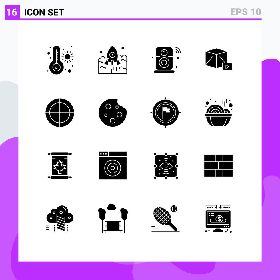 Modern Set of 16 Solid Glyphs and symbols such as box media spaceship button iot Editable Vector Design Elements Free Vector