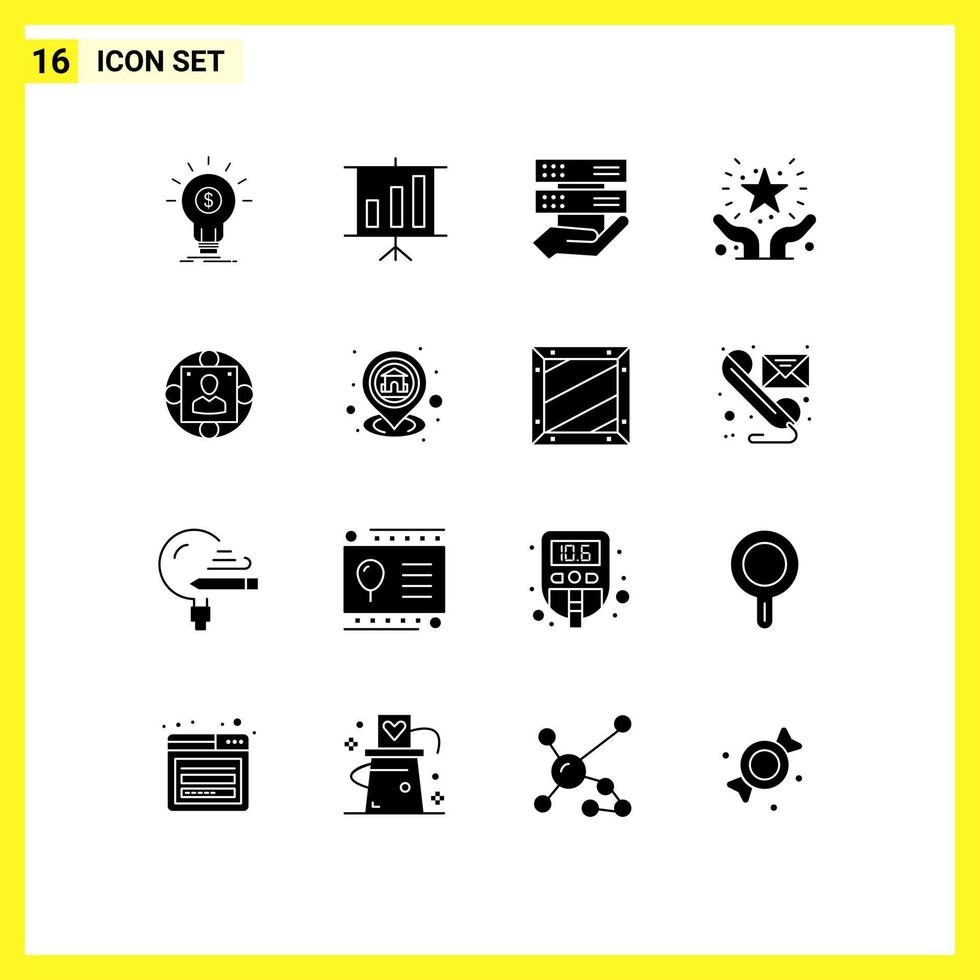 Modern Set of 16 Solid Glyphs and symbols such as manager hands support data giving care Editable Vector Design Elements Free Vector