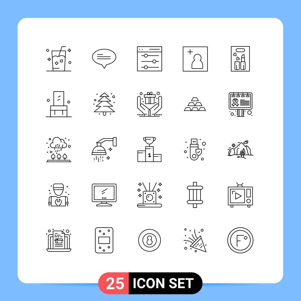 25 Universal Lines Set for Web and Mobile Applications cosmetics lipstick communication picture camera Editable Vector Design Elements
