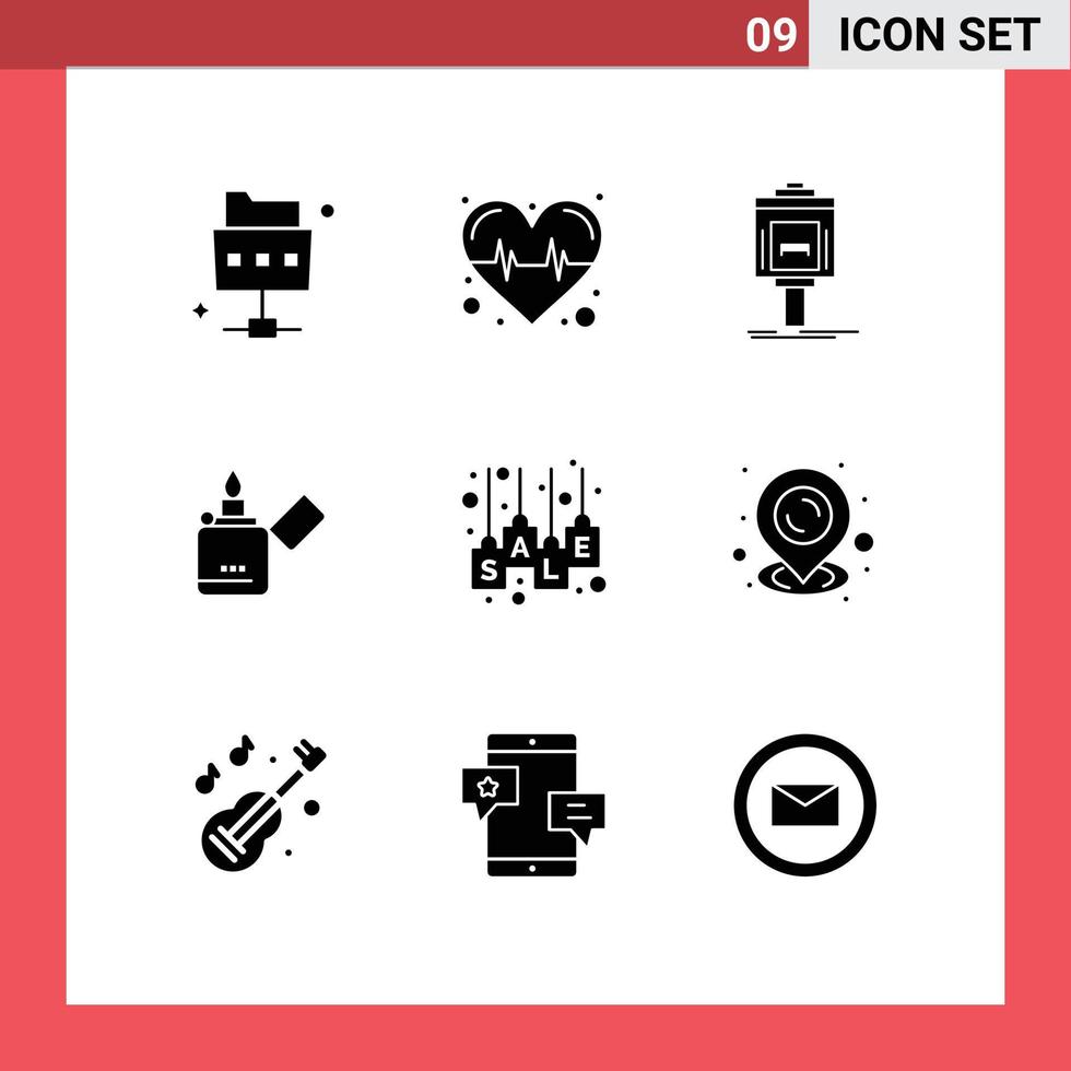 9 Universal Solid Glyphs Set for Web and Mobile Applications sale bag service zippo lighter Editable Vector Design Elements