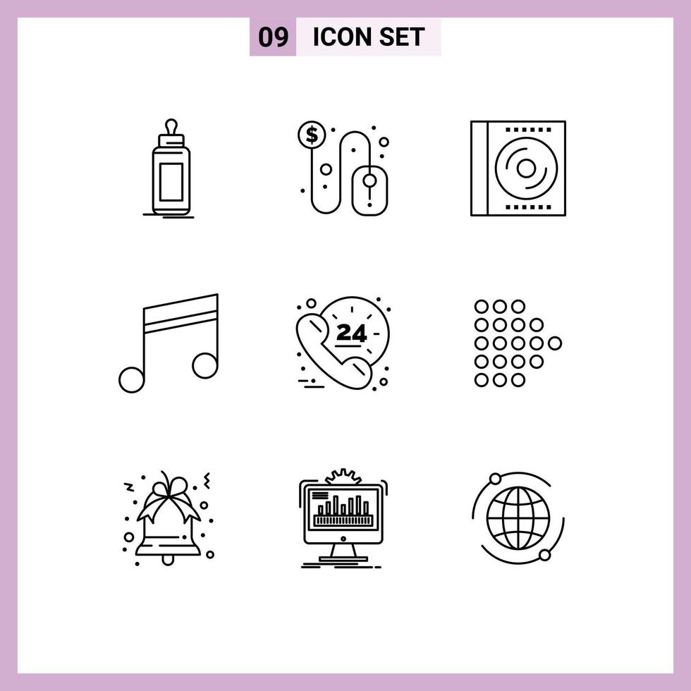 Set of 9 Modern UI Icons Symbols Signs for song media mouse album digital Editable Vector Design Elements