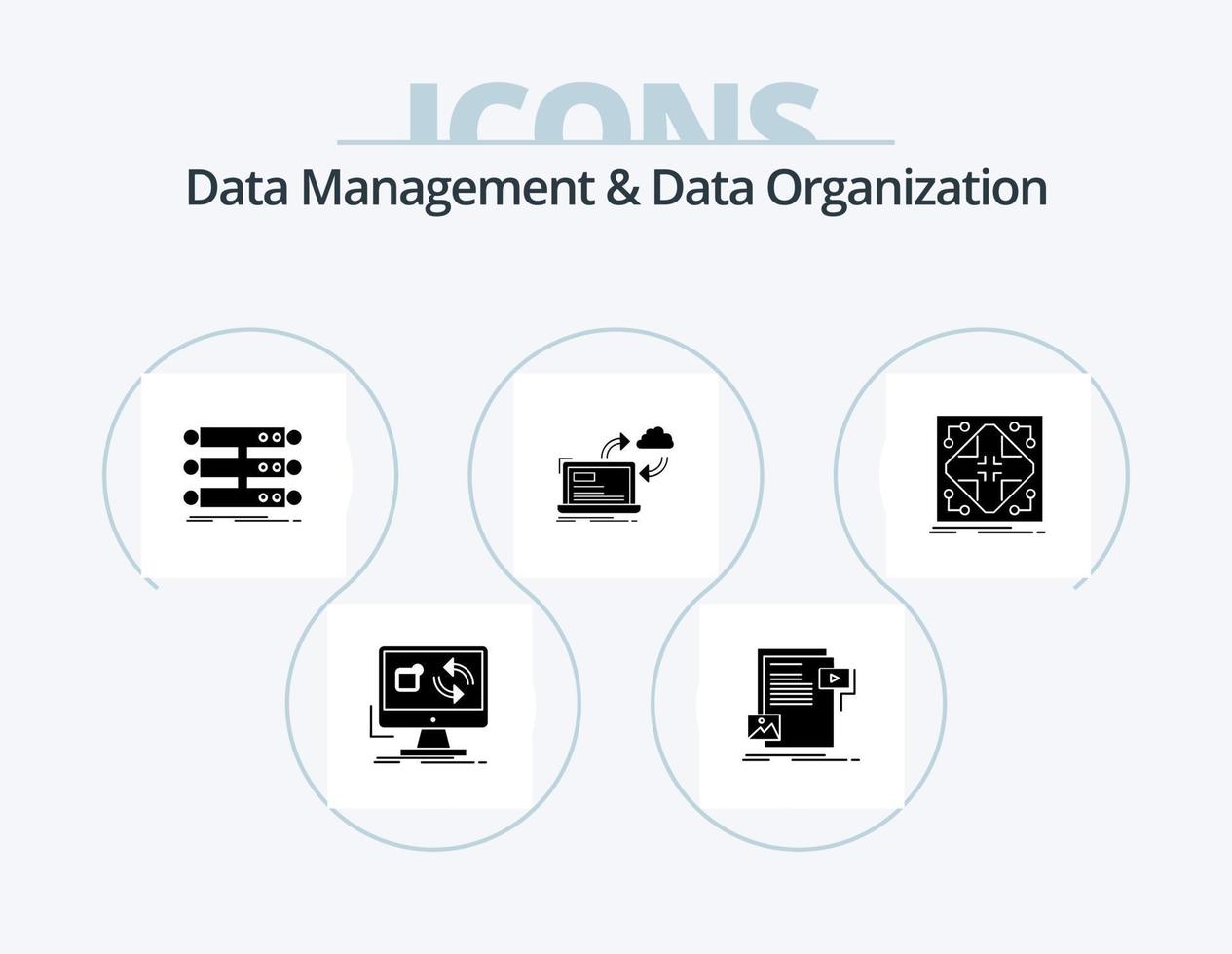 Data Management And Data Organization Glyph Icon Pack 5 Icon Design. data. sync. media. data. rack vector