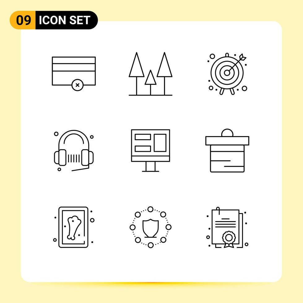 Editable Vector Line Pack of 9 Simple Outlines of window screen target song service Editable Vector Design Elements