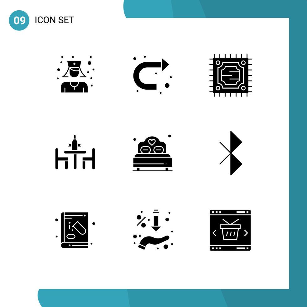 Set of 9 Modern UI Icons Symbols Signs for heart bed microchip meeting debate Editable Vector Design Elements Free Vector