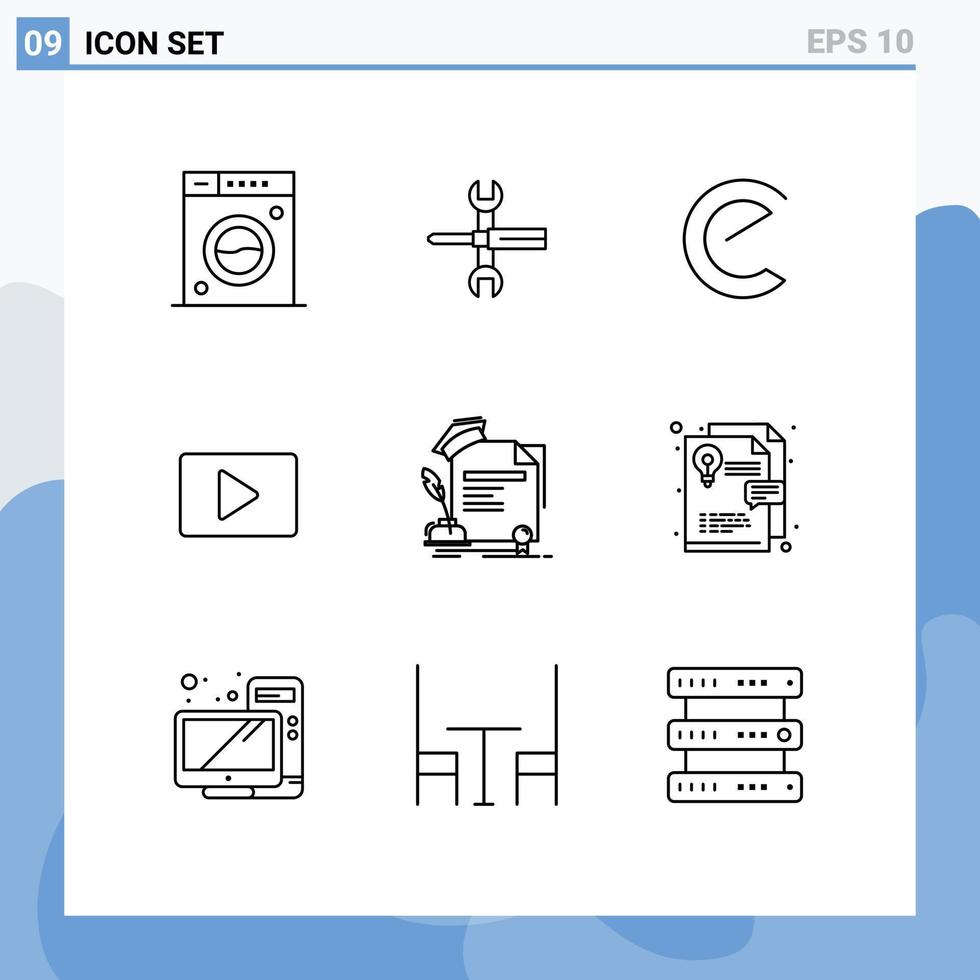 Pack of 9 Modern Outlines Signs and Symbols for Web Print Media such as player paly tools youtube crypto Editable Vector Design Elements