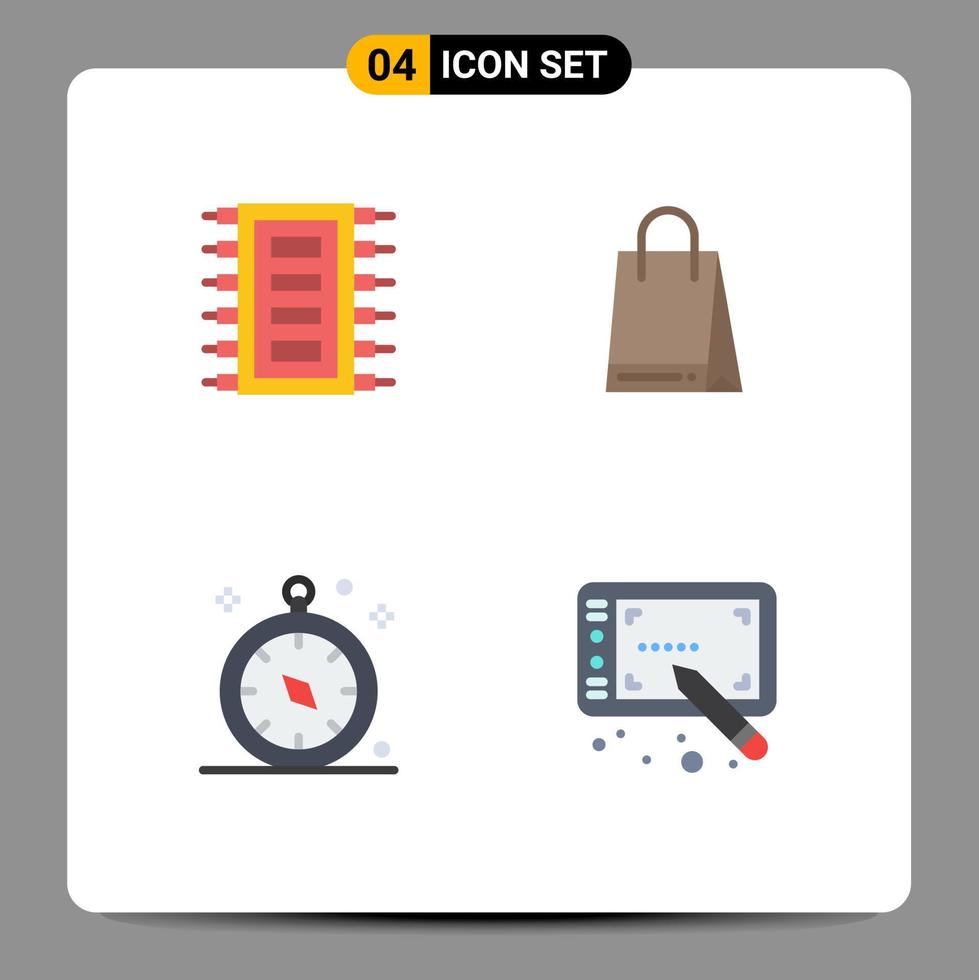 Set of 4 Modern UI Icons Symbols Signs for tech gps computer shopping travel Editable Vector Design Elements