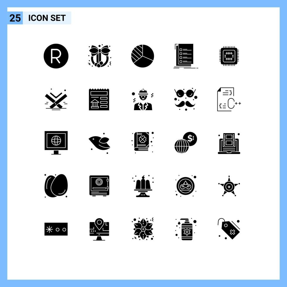 Modern Set of 25 Solid Glyphs Pictograph of technology system graph to do list Editable Vector Design Elements