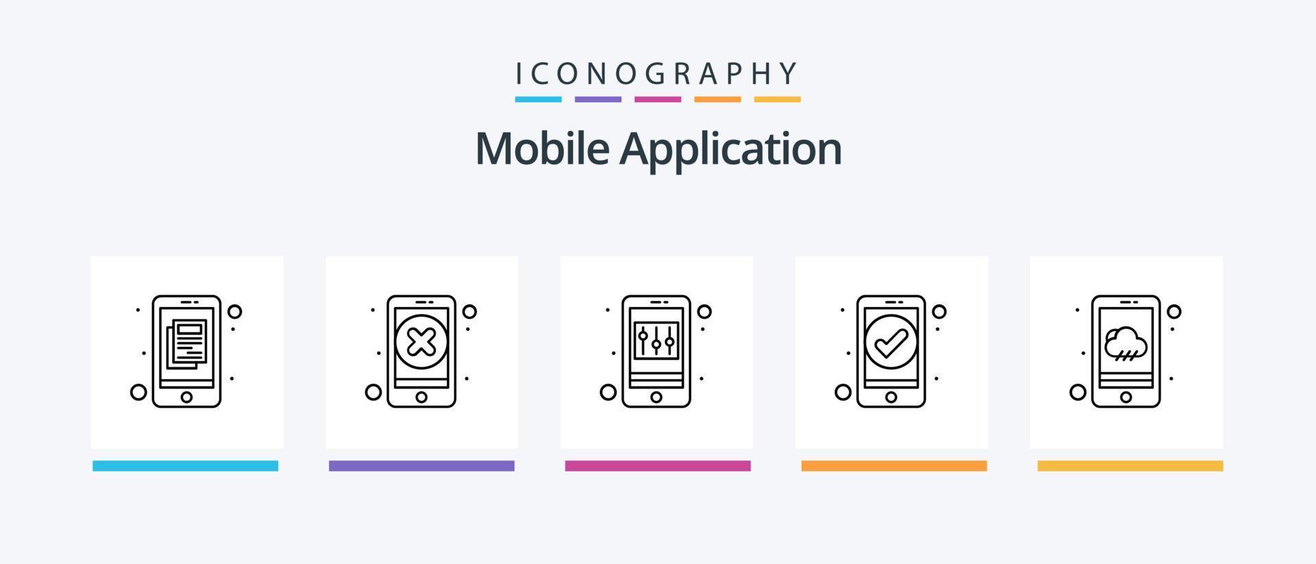 Mobile Application Line 5 Icon Pack Including infomation. interaction. app. culculater. app. Creative Icons Design vector