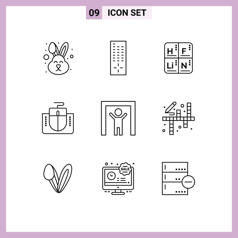 Outline Pack of 9 Universal Symbols of security human scanner table computer interface Editable Vector Design Elements