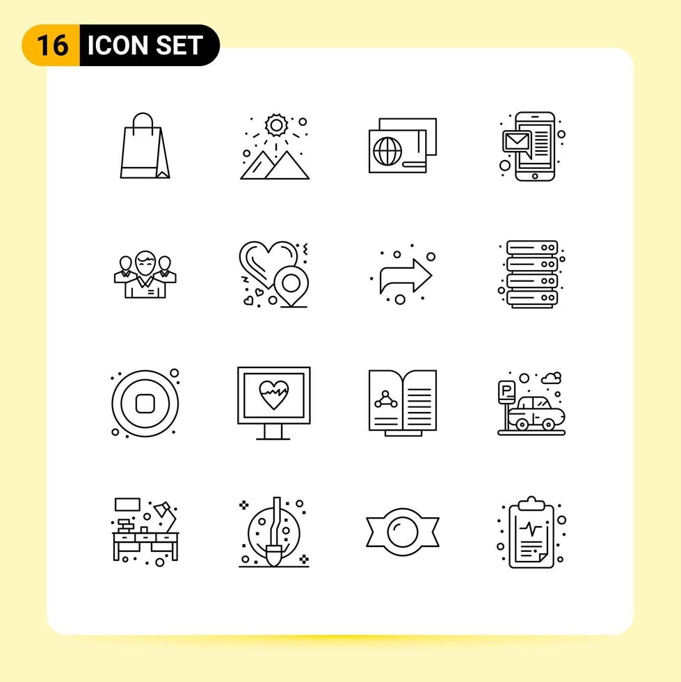 16 Universal Outlines Set for Web and Mobile Applications ceo team identity mobile email Editable Vector Design Elements