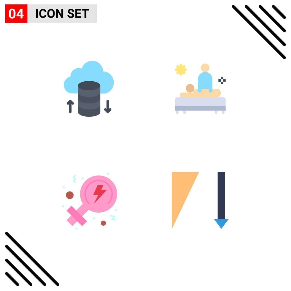 Set of 4 Vector Flat Icons on Grid for cloud hosting power back massage descending Editable Vector Design Elements Free Vector