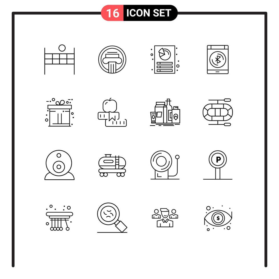 Set of 16 Vector Outlines on Grid for commerce smartphone analysis data bluetooth Editable Vector Design Elements Free Vector
