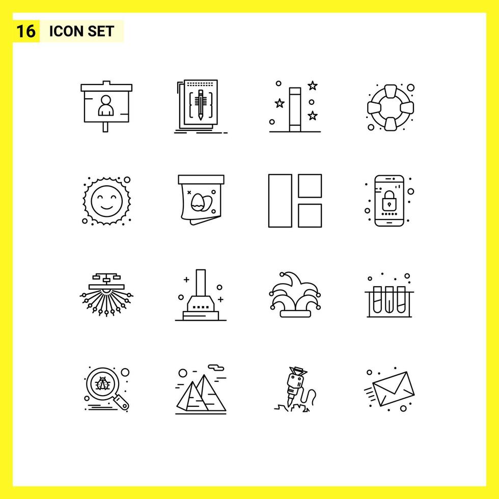 Pack of 16 Modern Outlines Signs and Symbols for Web Print Media such as support help language wand magic wand Editable Vector Design Elements