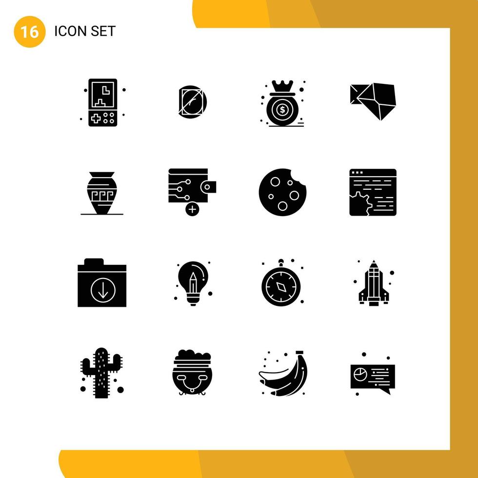Modern Set of 16 Solid Glyphs Pictograph of open mail science business graph Editable Vector Design Elements