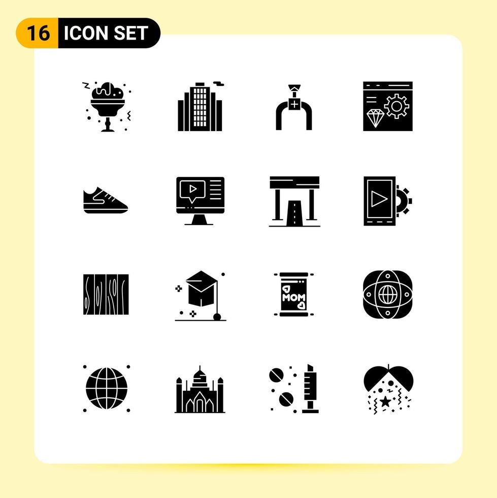 16 User Interface Solid Glyph Pack of modern Signs and Symbols of sports exercise gas development coding Editable Vector Design Elements