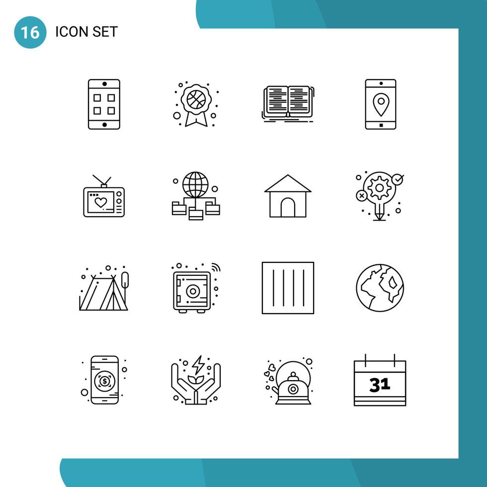 Set of 16 Vector Outlines on Grid for valentine television lesson map mobile application Editable Vector Design Elements Free Vector