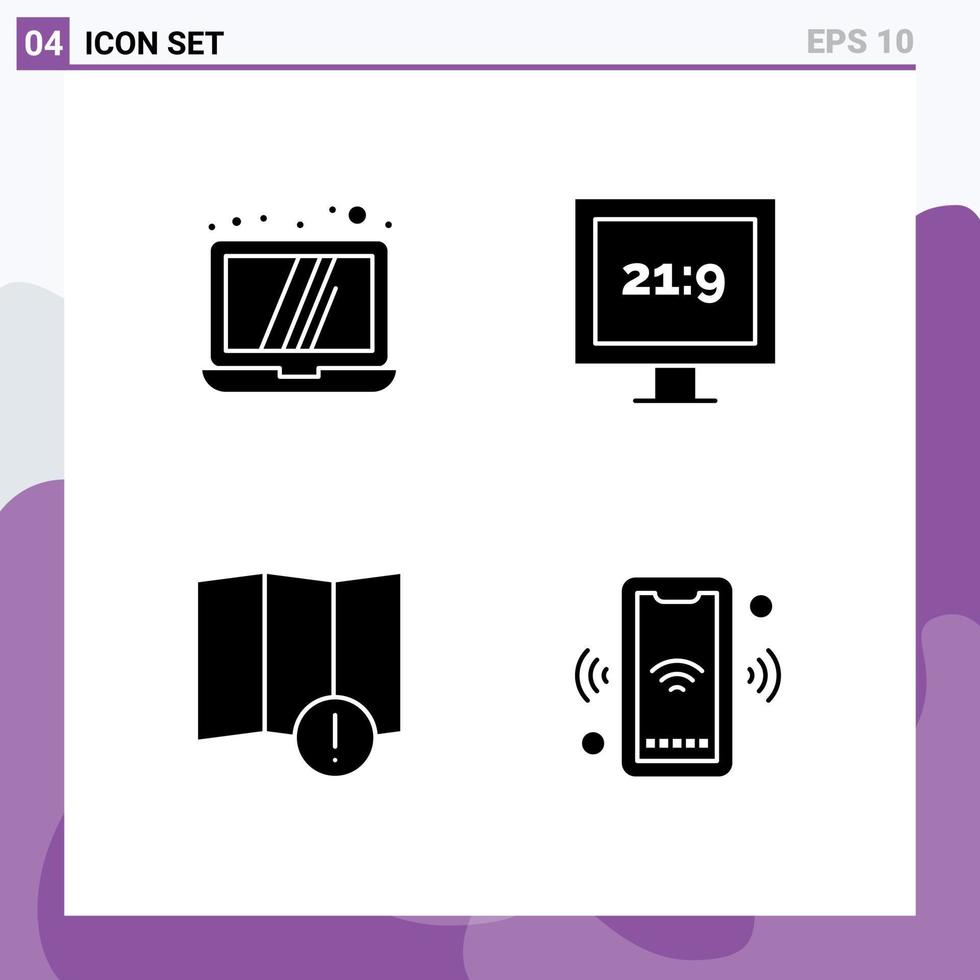 Universal Icon Symbols Group of 4 Modern Solid Glyphs of computer phone aspect ratio alert wifi Editable Vector Design Elements Free Vector
