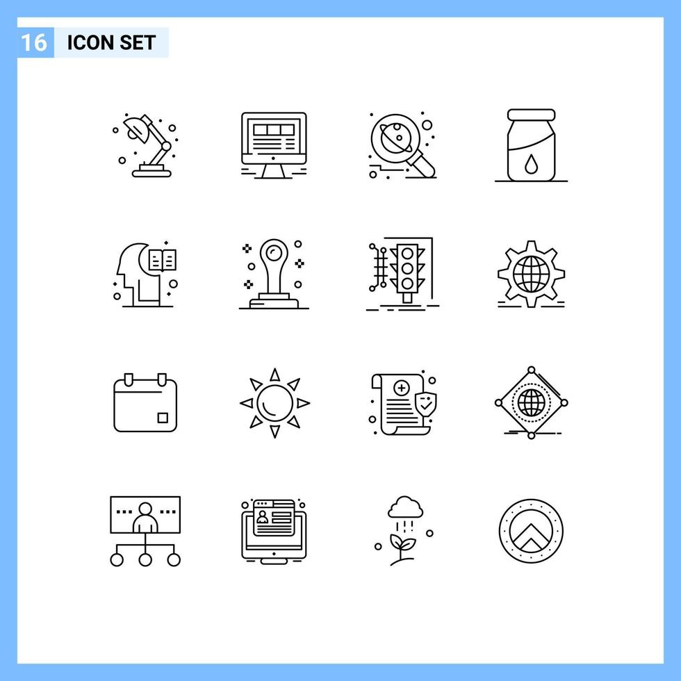 16 Creative Icons Modern Signs and Symbols of brain drop web bottle science Editable Vector Design Elements