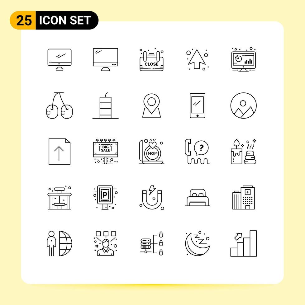 Pack of 25 Modern Lines Signs and Symbols for Web Print Media such as monitor bar advertisement analytic up Editable Vector Design Elements