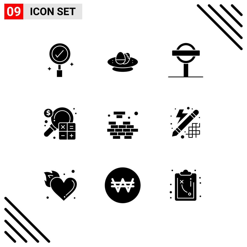 User Interface Pack of 9 Basic Solid Glyphs of logic finance road business accounting Editable Vector Design Elements Free Vector