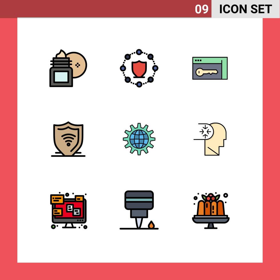 Set of 9 Modern UI Icons Symbols Signs for global protect network internet security room Editable Vector Design Elements