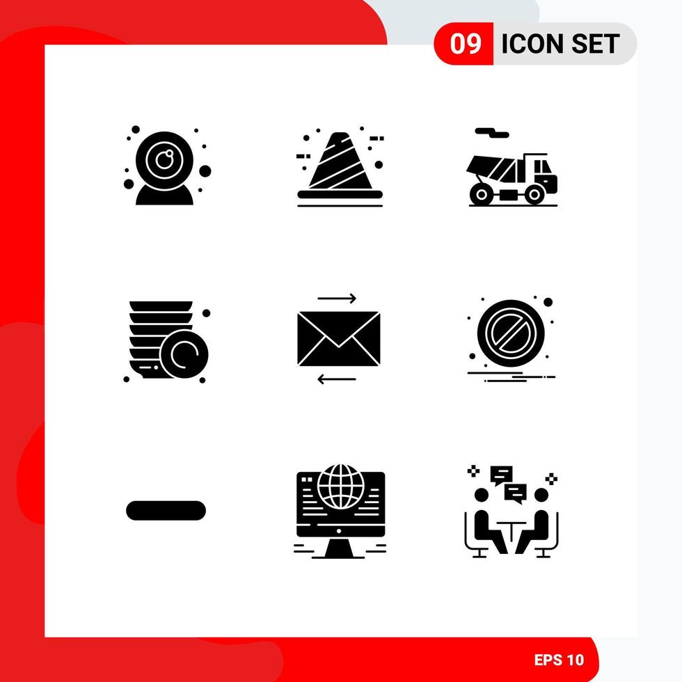 9 Solid Glyph concept for Websites Mobile and Apps block share bike message plate Editable Vector Design Elements Free Vector