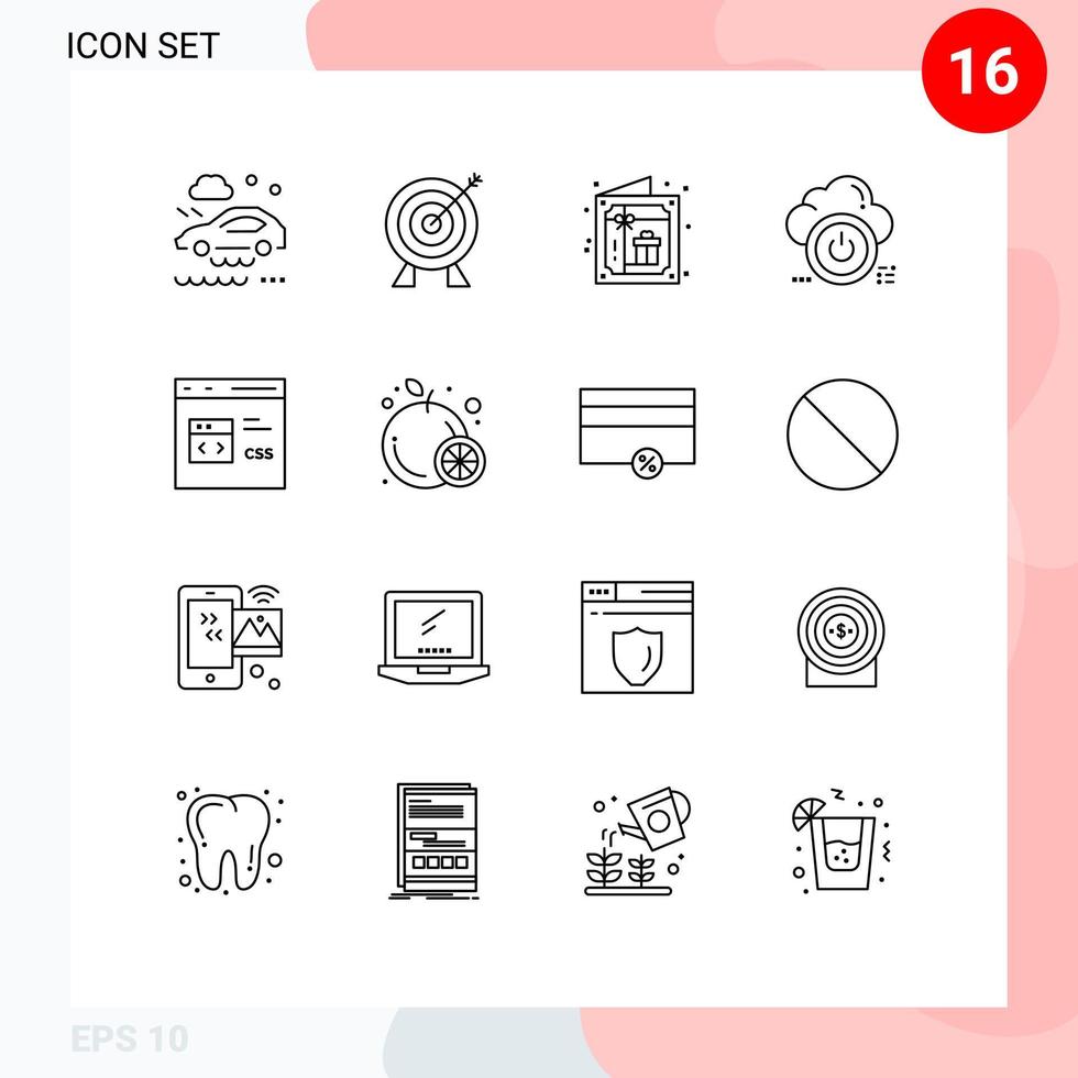 Pictogram Set of 16 Simple Outlines of code cloud birthday down shutdown Editable Vector Design Elements