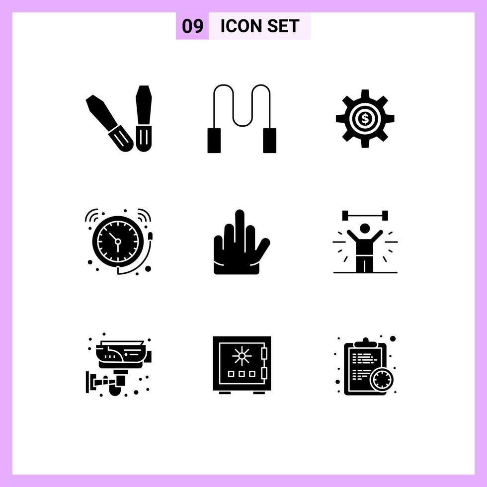 Group of 9 Modern Solid Glyphs Set for stop gesture dollar watch clock Editable Vector Design Elements