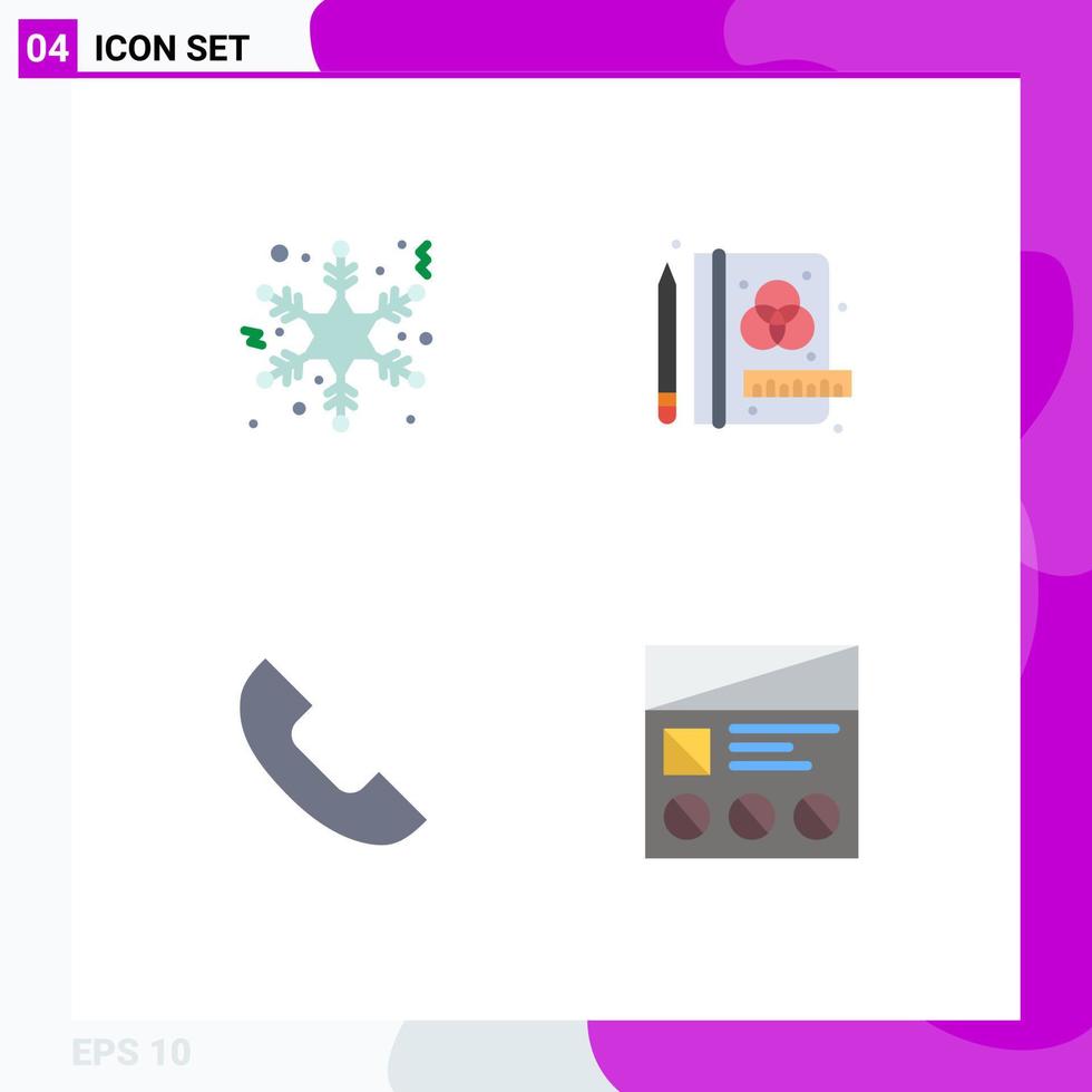 Group of 4 Modern Flat Icons Set for flake mobile creative call lo Editable Vector Design Elements Free Vector