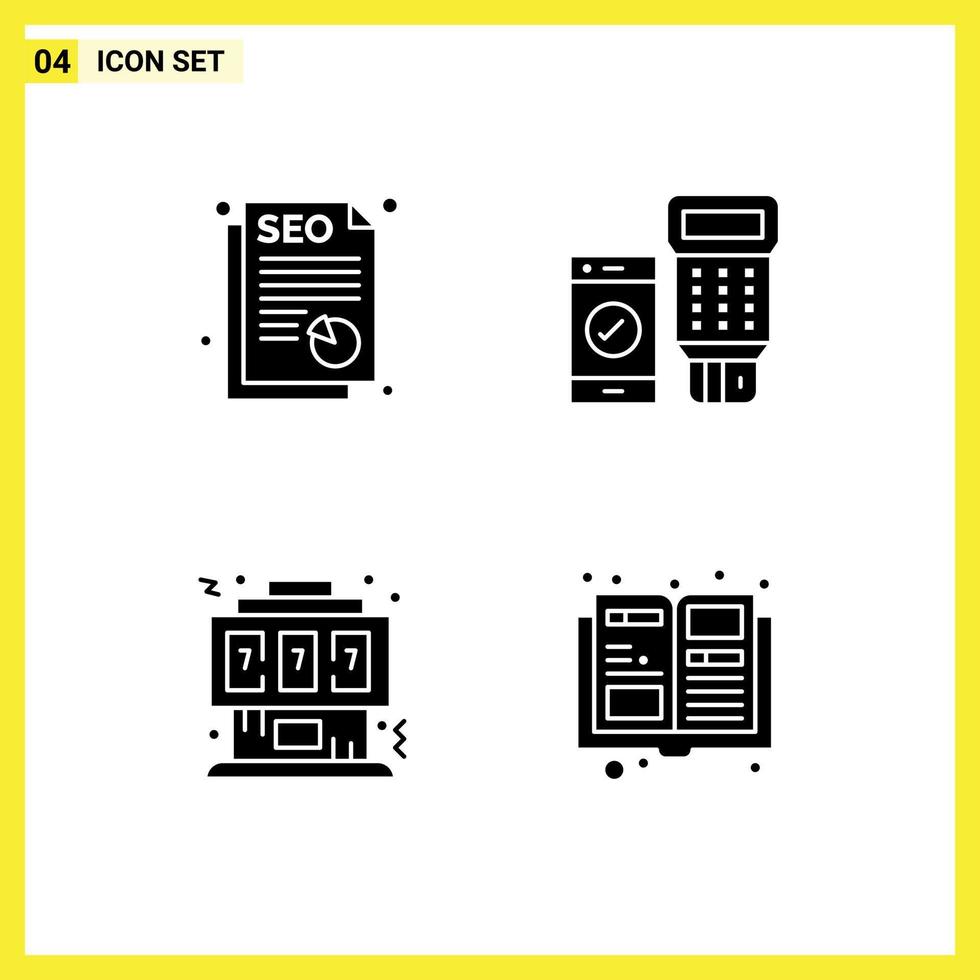 Pictogram Set of 4 Simple Solid Glyphs of report controller code scan console Editable Vector Design Elements Free Vector