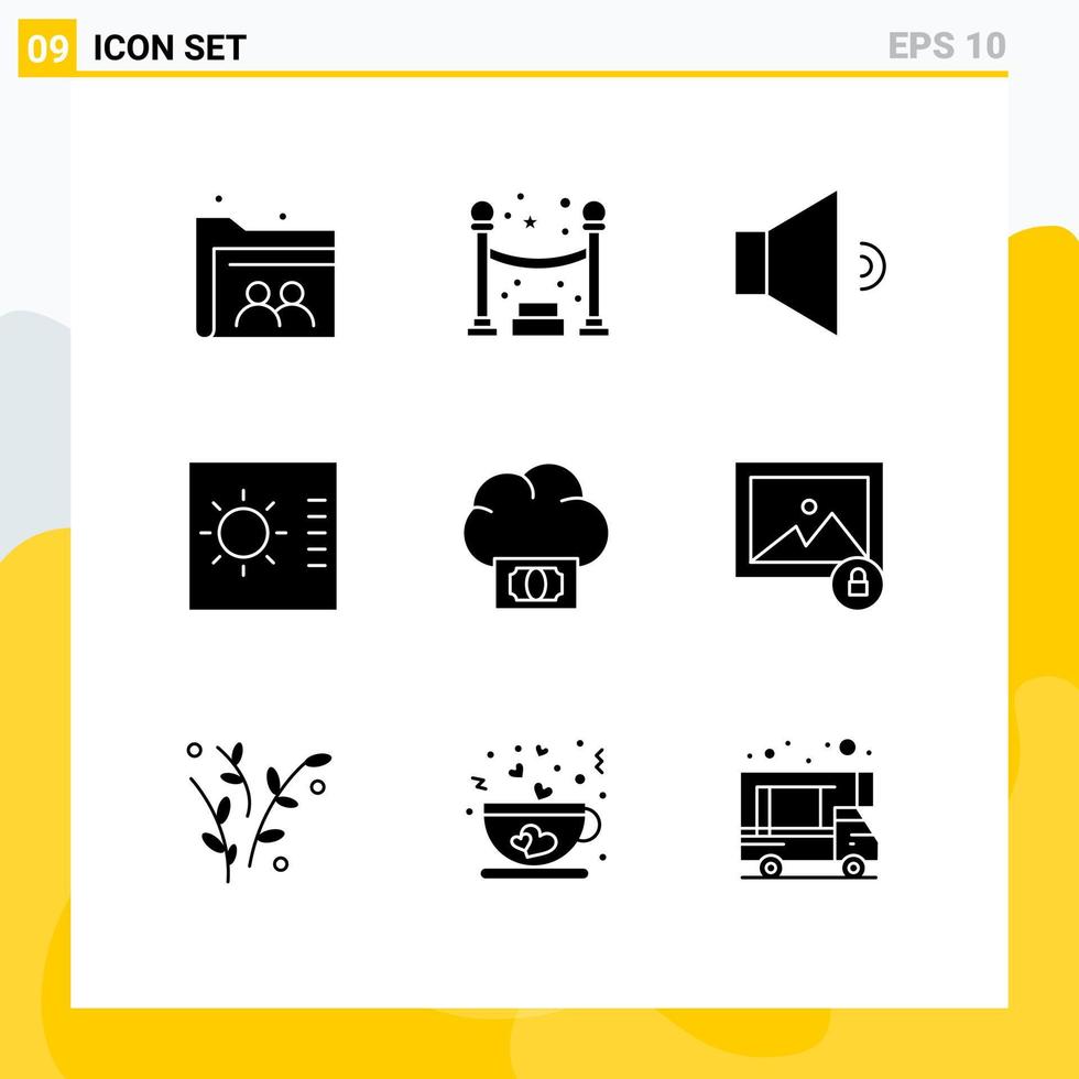 Group of 9 Modern Solid Glyphs Set for image funding speaker cloud layout Editable Vector Design Elements