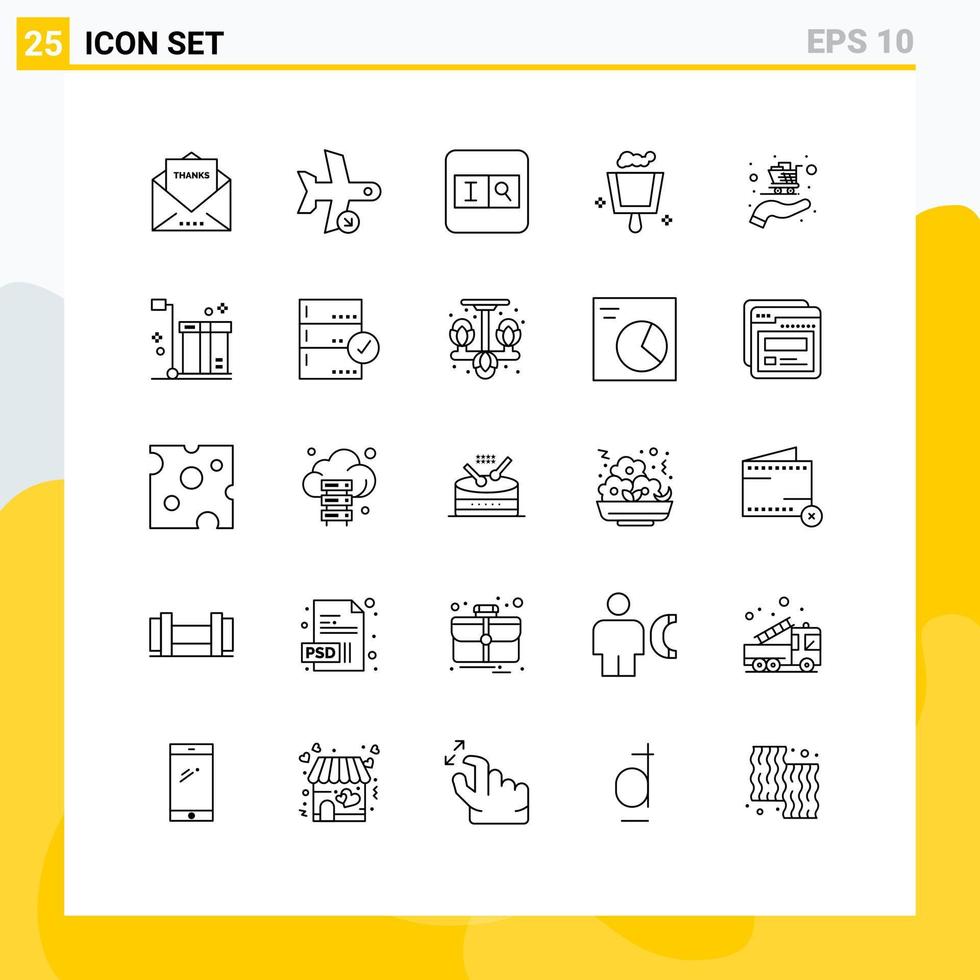 Editable Vector Line Pack of 25 Simple Lines of cart sweep transport dustpan text field Editable Vector Design Elements