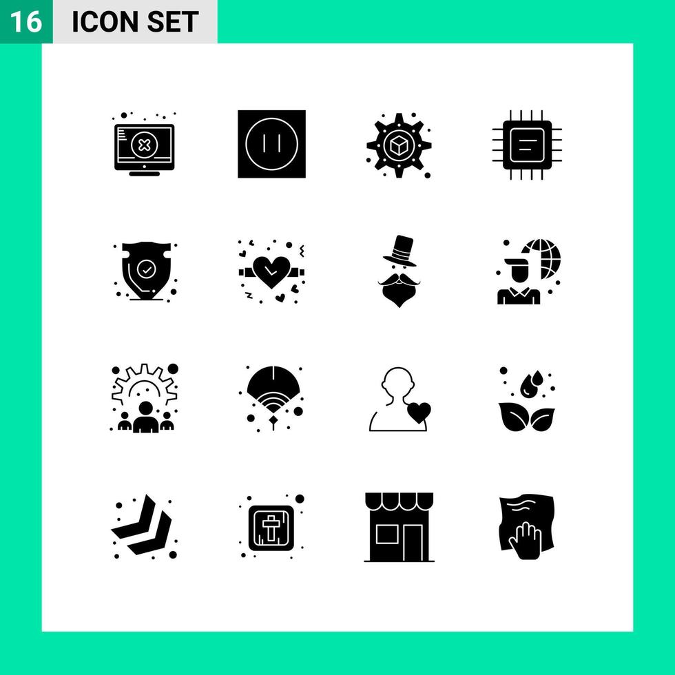 User Interface Pack of 16 Basic Solid Glyphs of verify protect printing shield processor Editable Vector Design Elements Free Vector