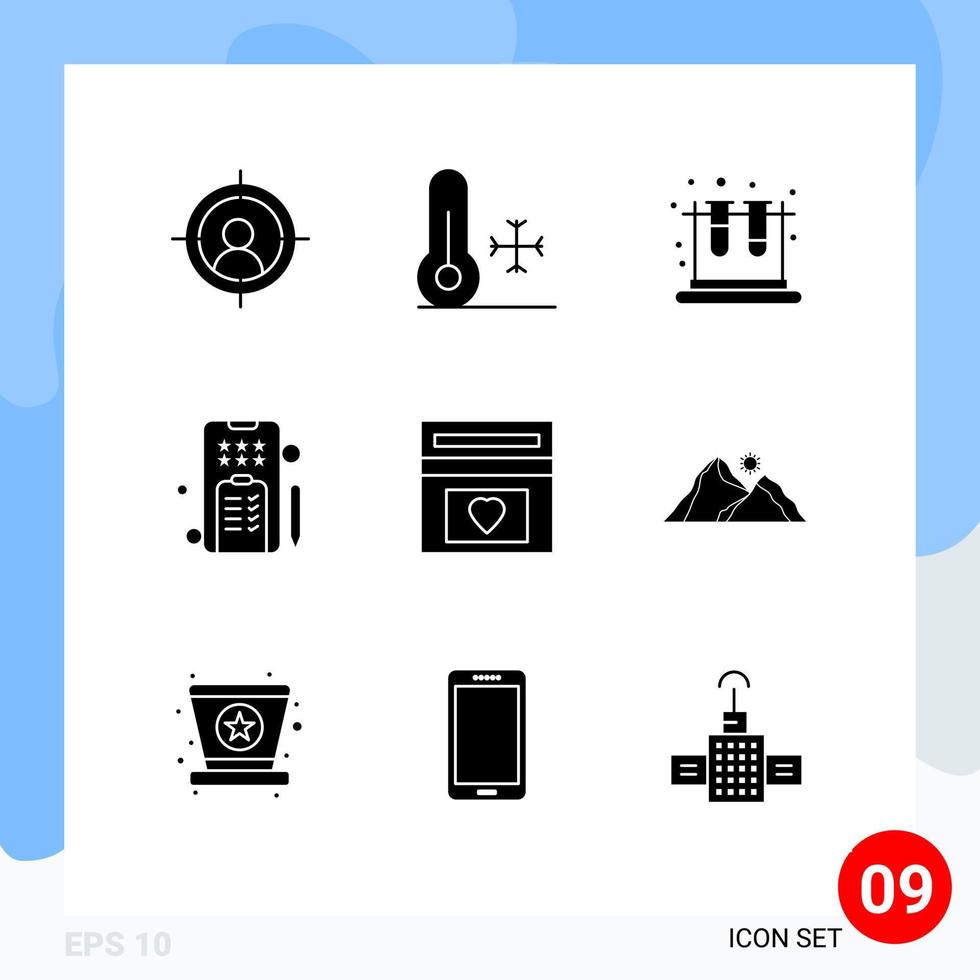 9 Universal Solid Glyphs Set for Web and Mobile Applications wedding love lab fund text Editable Vector Design Elements