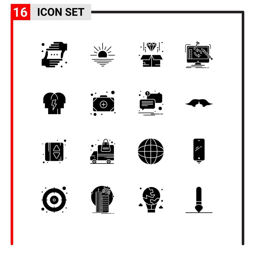 16 Creative Icons Modern Signs and Symbols of processing tools open project product Editable Vector Design Elements