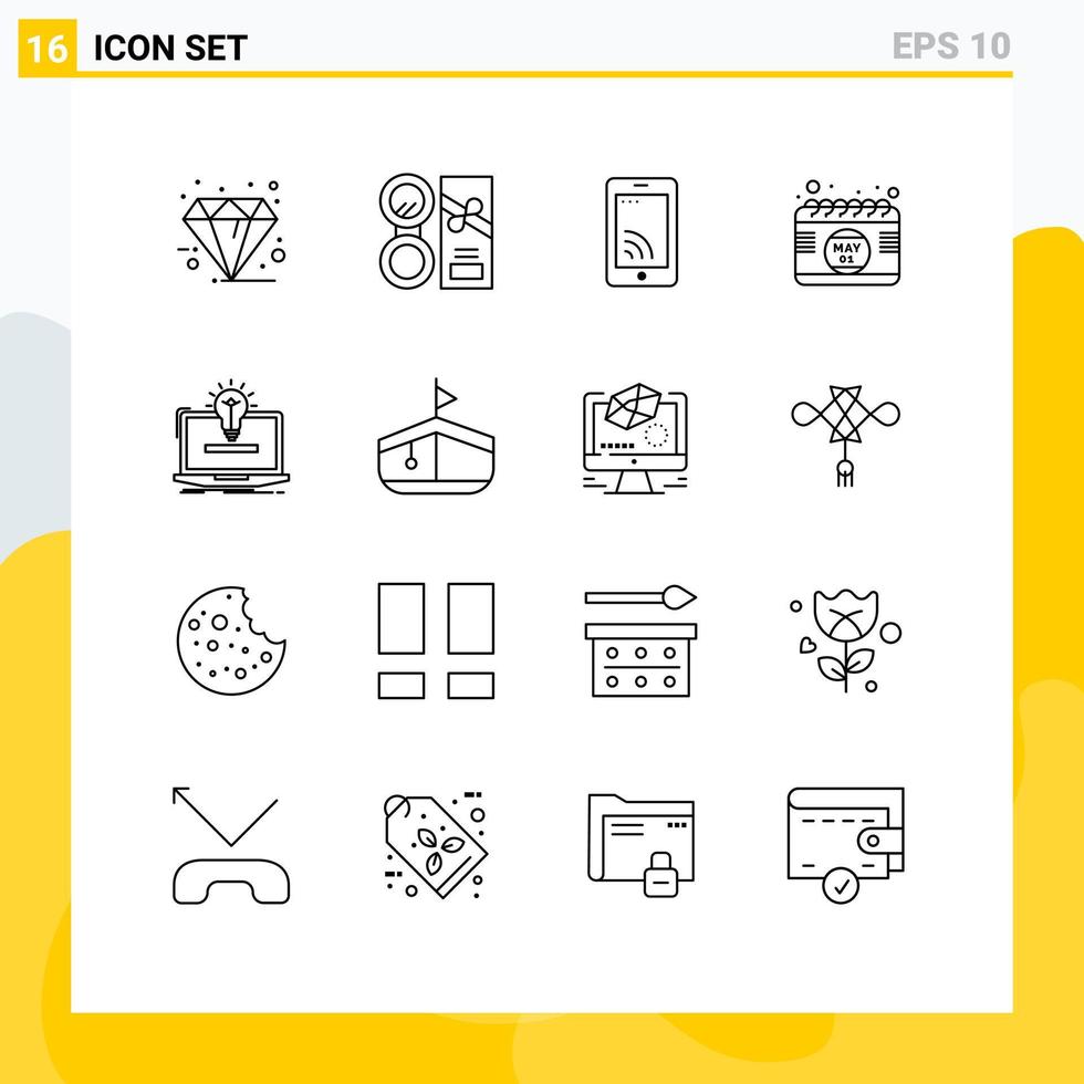Group of 16 Modern Outlines Set for time date make calendar wifi Editable Vector Design Elements