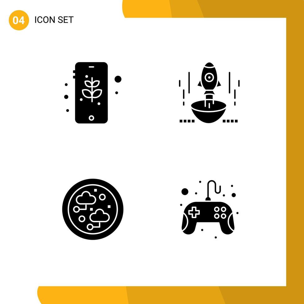 Set of 4 Vector Solid Glyphs on Grid for earth spaceship safe business internet Editable Vector Design Elements Free Vector