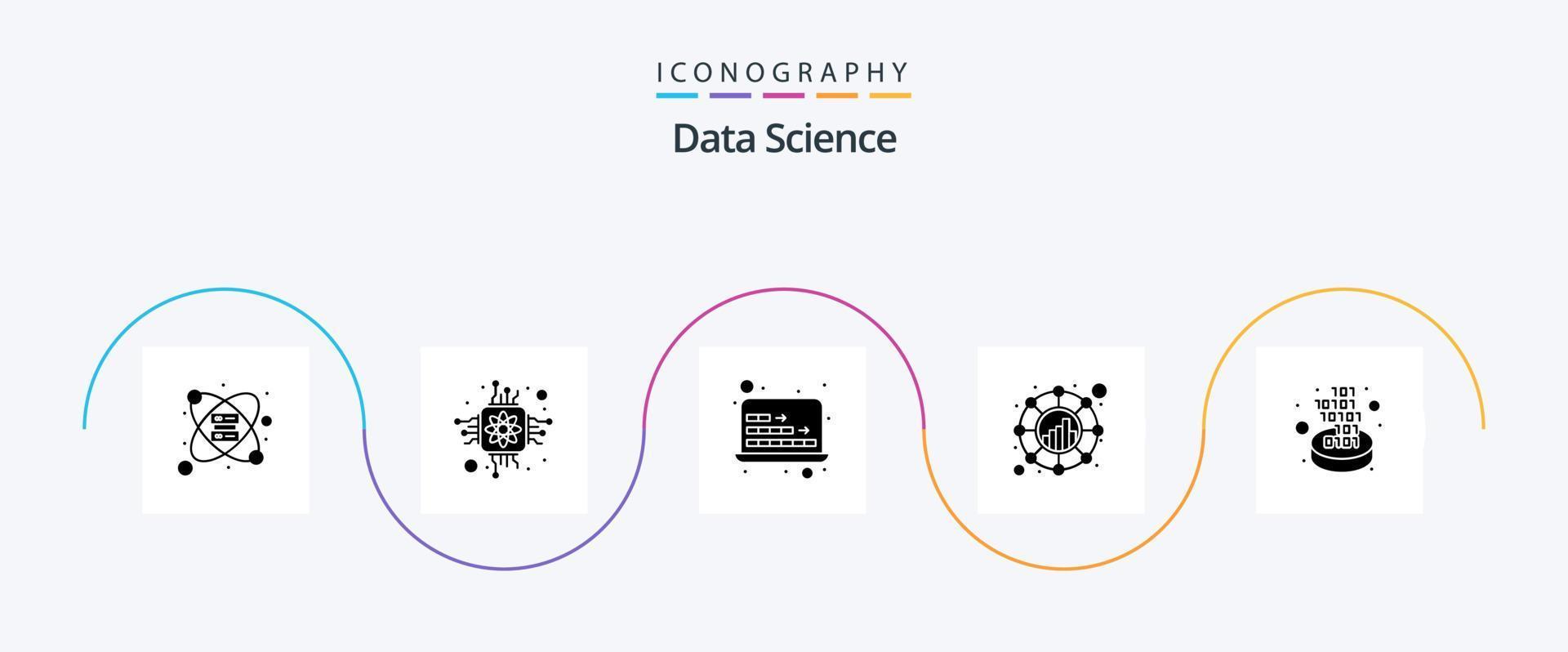 Data Science Glyph 5 Icon Pack Including code. consult. computer. connection. analysis vector
