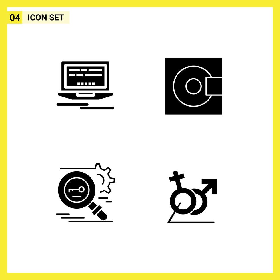 Editable Vector Line Pack of 4 Simple Solid Glyphs of laptop search devices products secure Editable Vector Design Elements