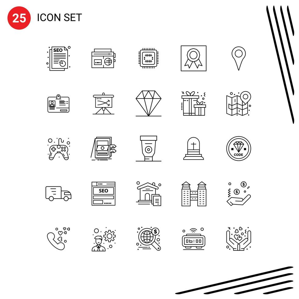 Pack of 25 Modern Lines Signs and Symbols for Web Print Media such as map geo location tech medal badges Editable Vector Design Elements