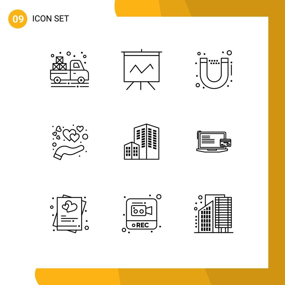 9 Universal Outlines Set for Web and Mobile Applications payment building streamline architecture heart Editable Vector Design Elements Free Vector
