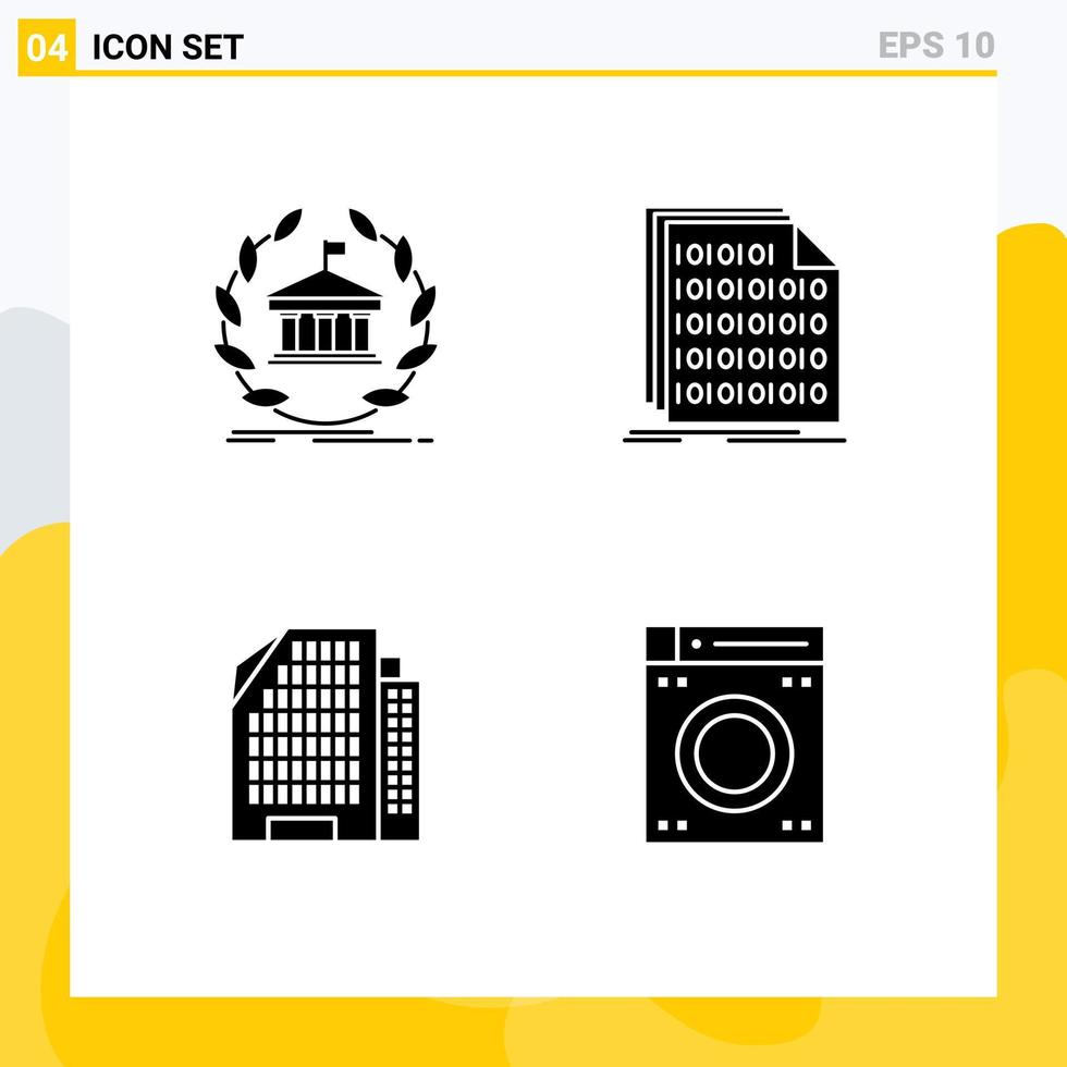 Universal Icon Symbols Group of 4 Modern Solid Glyphs of bank data university binary apartment Editable Vector Design Elements