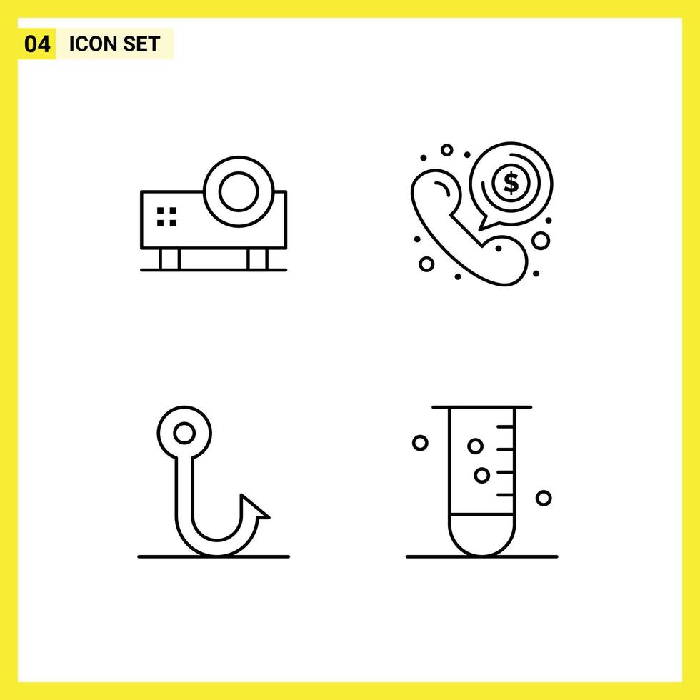 Set of 4 Modern UI Icons Symbols Signs for multimedia talk slide projector communication fishing Editable Vector Design Elements