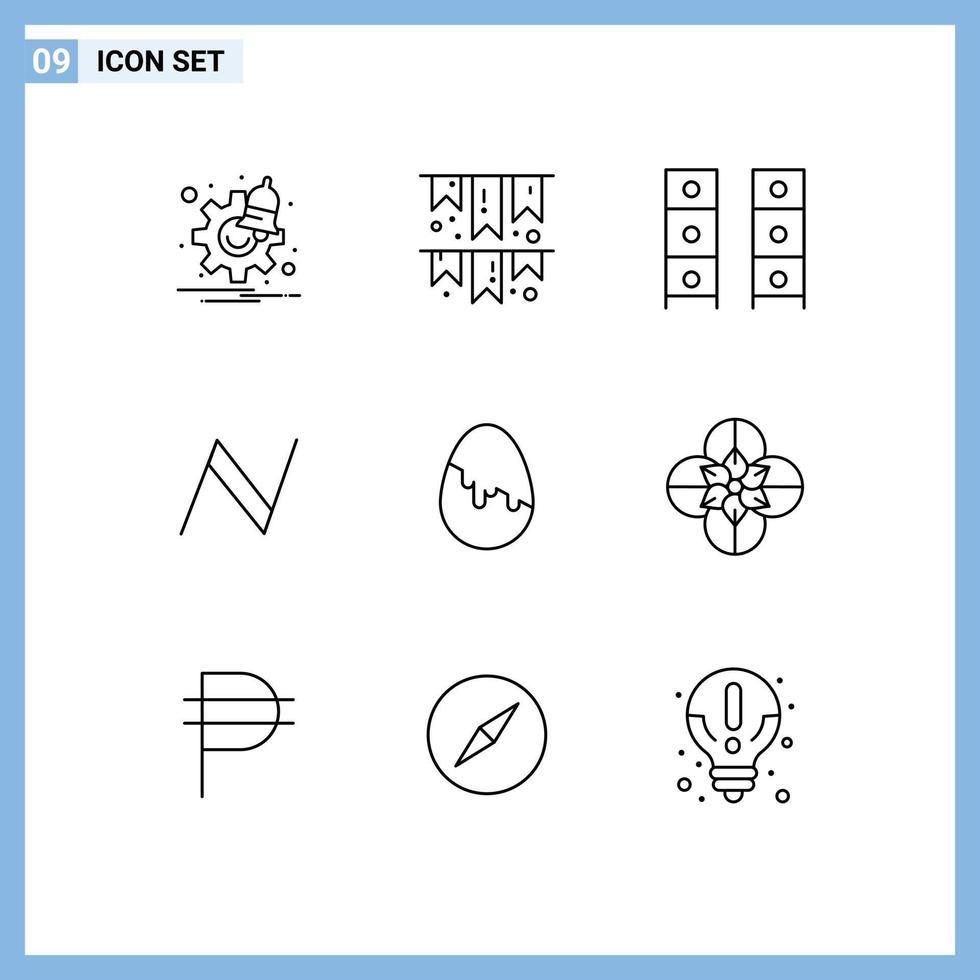 Set of 9 Vector Outlines on Grid for decoration cryptocurrency draw blockchain wardrobe Editable Vector Design Elements Free Vector