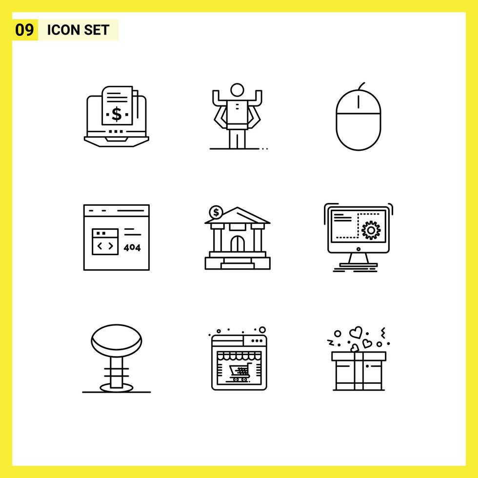 9 Universal Outline Signs Symbols of development coding computers browser mouse Editable Vector Design Elements