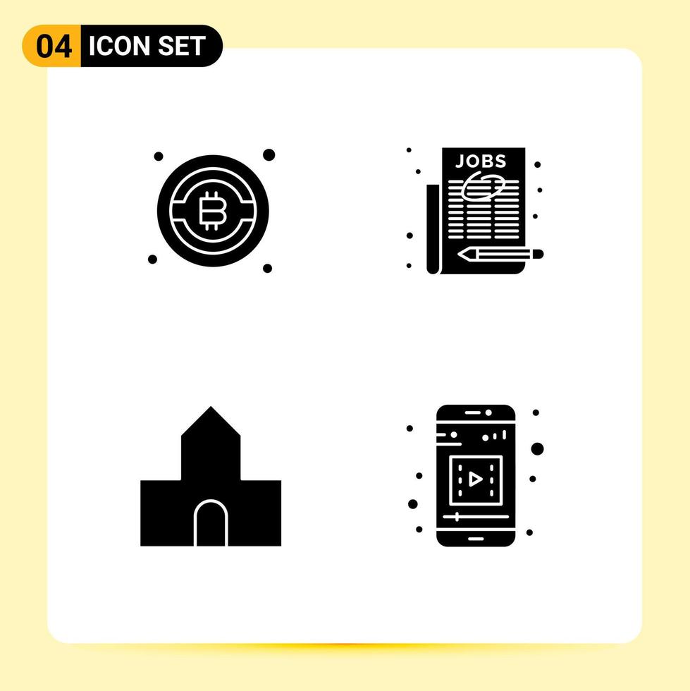 Group of 4 Modern Solid Glyphs Set for bitcoin chapel employment select job mobile app Editable Vector Design Elements