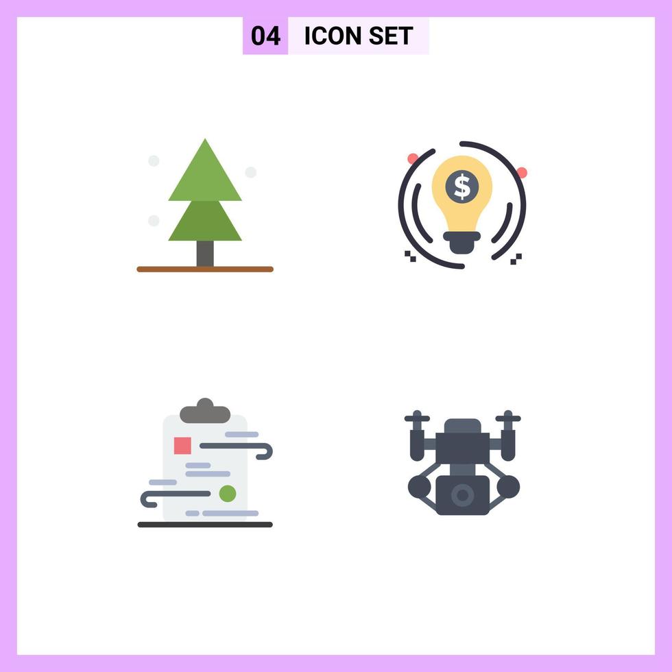 4 Universal Flat Icons Set for Web and Mobile Applications forest document tree circle paper Editable Vector Design Elements