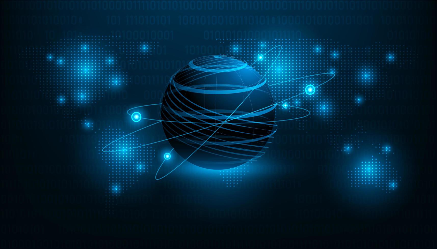 Abstract futuristic world global with orbit,map on background.vector and illustration Pro Vector