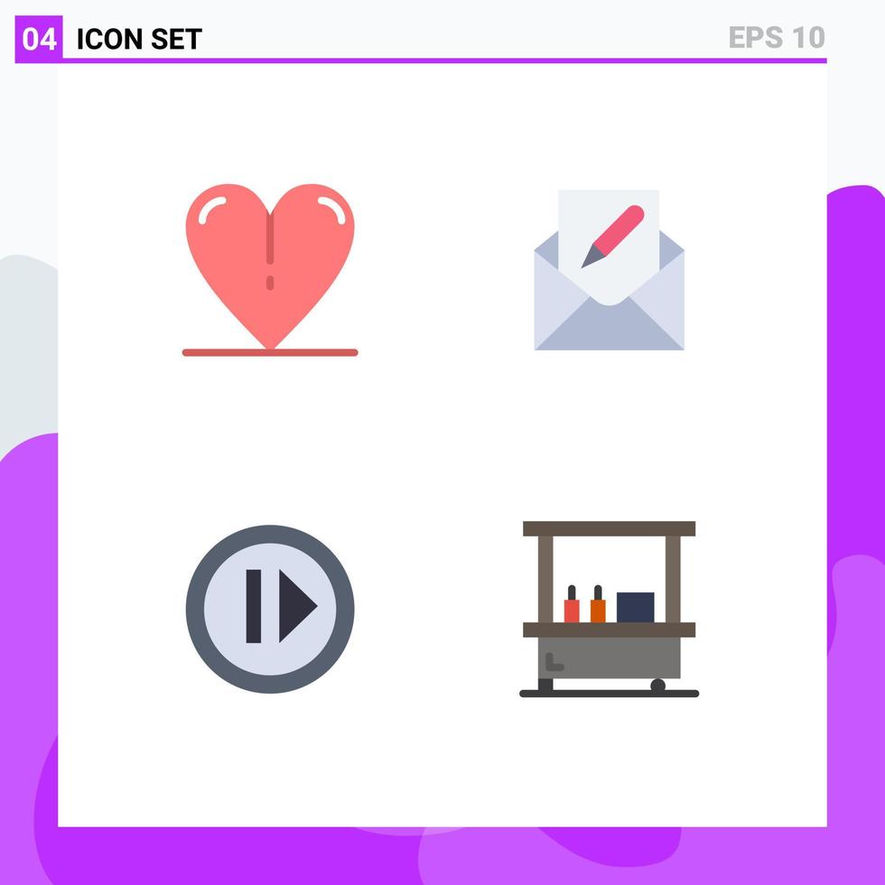 Universal Icon Symbols Group of 4 Modern Flat Icons of heart forward compose envelope resume Editable Vector Design Elements Free Vector