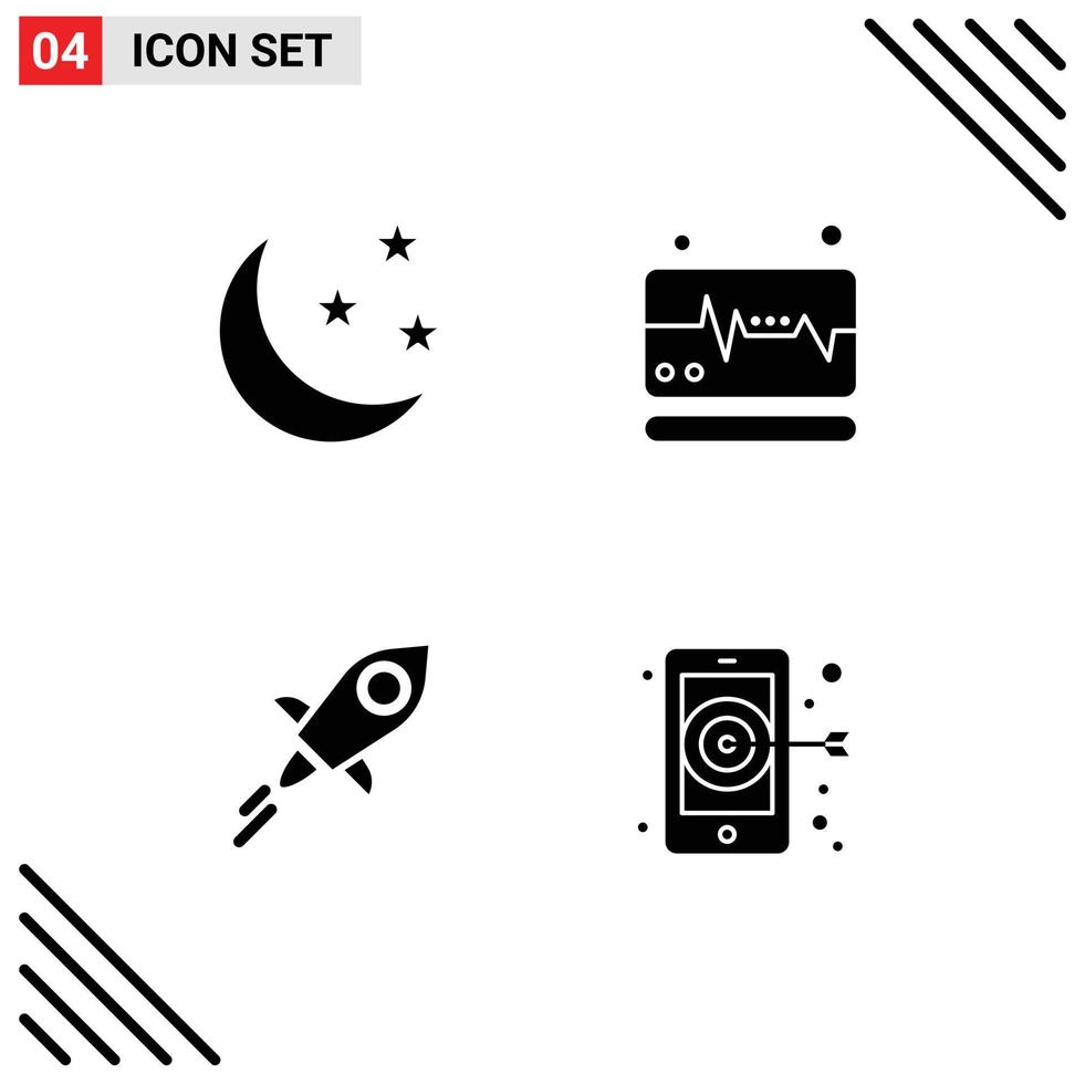 Set of 4 Vector Solid Glyphs on Grid for half crypto currency nature pulse digital Editable Vector Design Elements Free Vector